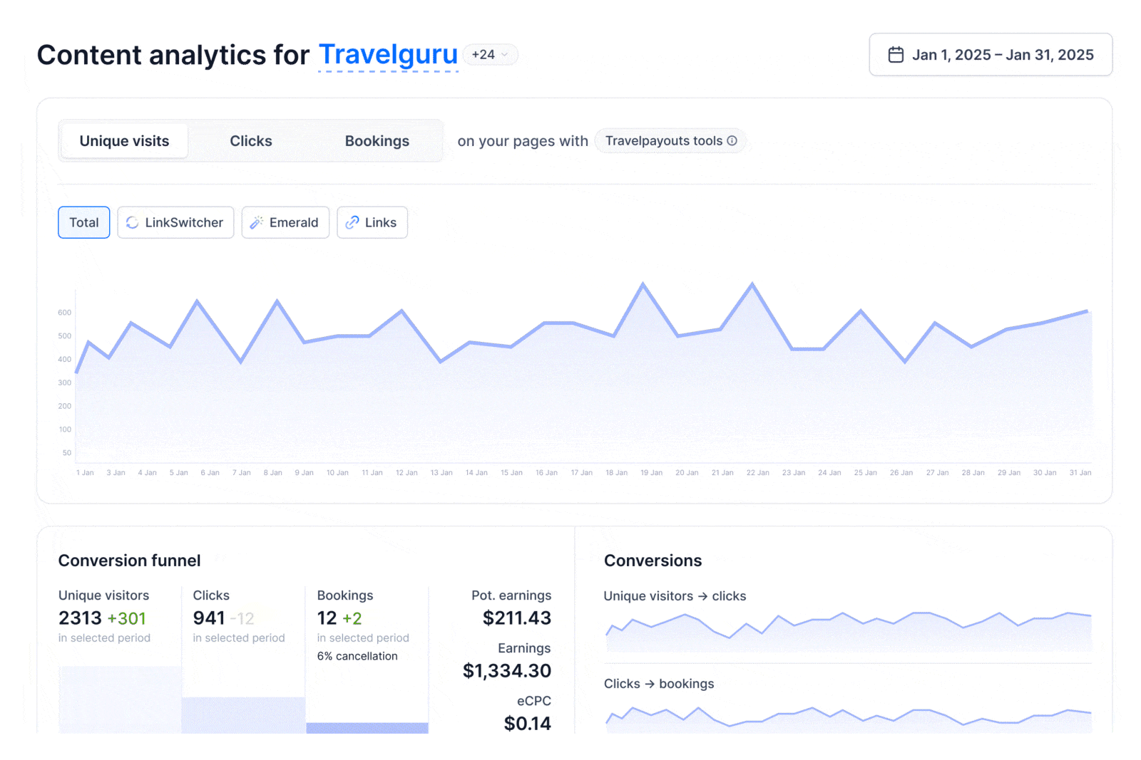 Travel content creators have already earned $230,000+ using Travelpayouts’ AI-powered monetization tools. Set them up once, let AI do the work, and start seeing results.
